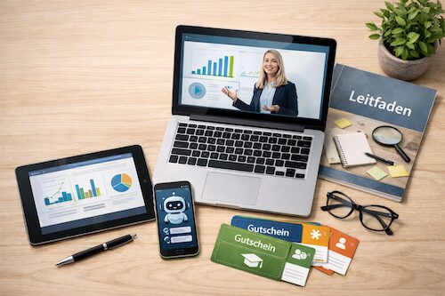 Du kannst dir das Handbuch, die Materialien und Extras herunterladen und bei dir speichern. Auf die Aufzeichnungen hast du mindestens 2 Jahre Zugriff.